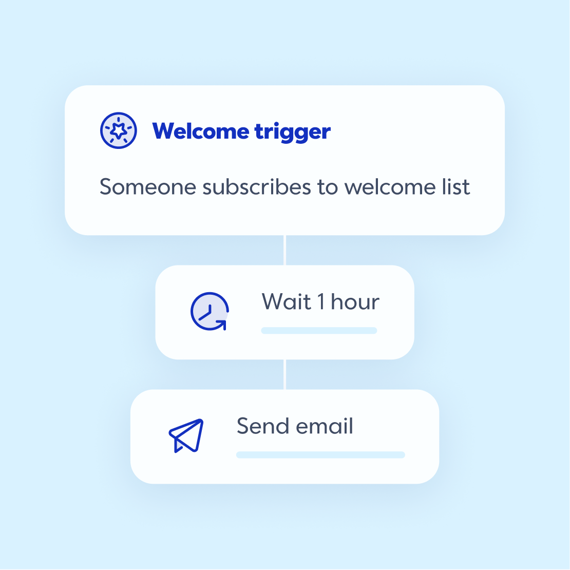- Welcome: A welcome email introduces subscribers to your brand. Tell your company’s story, share what you do, and offer incentives to new customers.